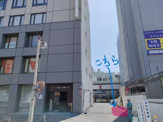 本川越プリンスホテル正面、1F八十二銀行のビルの4Fです。茶色い高層マンション(1F旧イトーヨーカドー)の隣です。